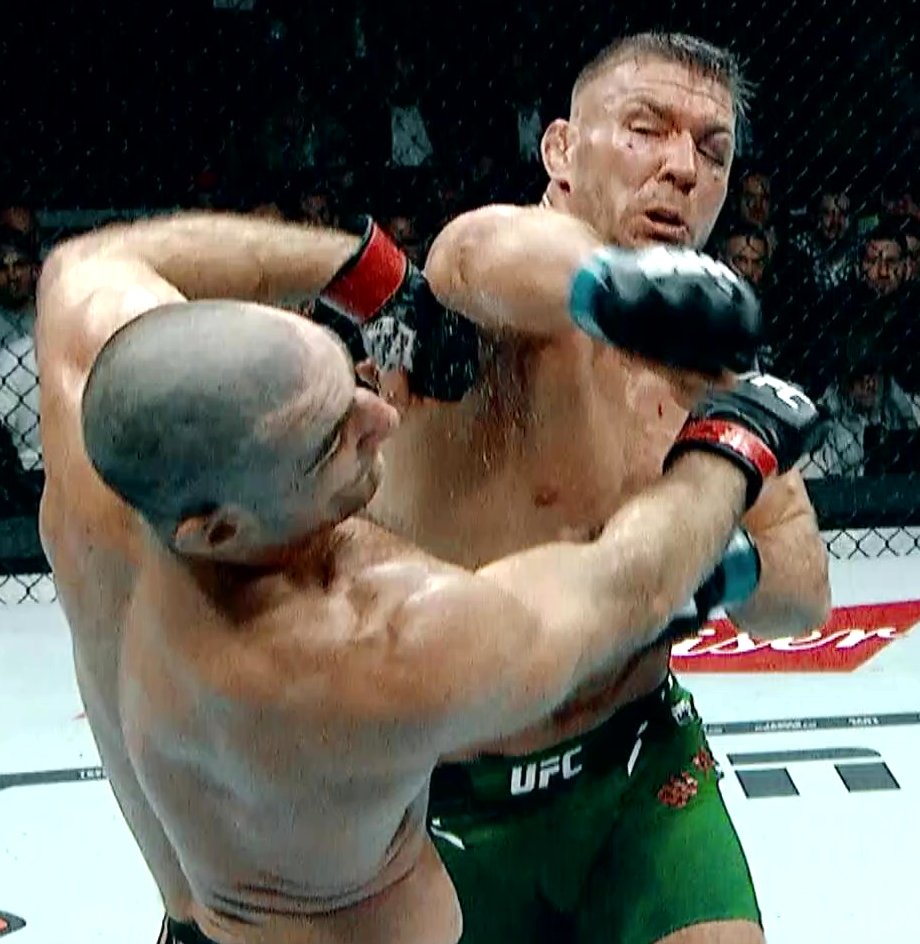4/13/24 Light Heavyweight: Jiri Prochazka vs. Aleksandar Rakic R2 3:17. Rakic has a lot more technique, and fought a great smart fight, beating up Jiri's legs on the outside and when he came in rather than headhunting. Jiri has so much more power and speed, and will keep putting himself in harm's way until someone goes down. He's a great fighter to watch because it's kill or be killed. Rakic has never been known for his entertainment value, but Jiri's determination kept forcing him to fight, and turned this into Rakic's most entertaining match, even though Rakic still did his best to keep exciting things from happening because brawling with Prochazka isn't his path to victory. Jiri lost the technical battle badly, and his left calf was toast. Eventually, he just had to wade into danger, trying to use what was left of his movement to make something happen before it was too late. Because his nature is to go second and rely on ducking or dipping then answering back with a punch from an odd low angle, he throwing enough to create much disturbance for most of round 1. Following in the footsteps of Alex Pereira, Rakic's real game plan was to beat up the lead calf, and by midway through the first round, Jiri was already having trouble putting weight on it. Rakic did an excellent job of timing the low kick when he had Jiri backing or when Jiri was taking his first step forward, and was largely able to stay back and use his low kick with some hand fighting and jabs to maintain distance. Luckily for Jiri, Rakic's strikes aren't nearly as lethal as Pereira's. Jiri stuck with his game plan of pushing forward even though he wasn't really able to get any attacks off, and was really just getting picked apart throughout the first round, upping the aggression and amount of in your face pressure minute by minute even though Rakic's smart choices kept him from being able to counter that much. Jiri finally landed a good right hand off a left high kick fake, although Rakic connected at the same time. Jiri then stunned Rakic with the right hook on the inside. The big difference here is that when Jiri connected, Rakic was hurt, and he was able to swarm him and follow it up, while Rakic landed his single shots, but was never able to stun Jiri and go on a run. Rakic stayed disciplined, fighting a responsible fight behind the jab, and Jiri was very reticent to fight southpaw to protect the worse leg because it hamperes his offensive capabilities. Jiri was running out of time physically, so he increasingly cared less and less about what Rakic was doing, and just had to do his best to get in Rakic's face and turn it into more of a brawl where he could utilize his physical advantages, especially after landing a left high kick. The more Jiri was able to make this a choatic fight where they swung big, the more it favored Jiri, who has the speed, quickness, and power advantages, and is way more creative. Jiri hurt Rakic with a big right hand, and Rakic tried to run away, but Jiri just kept landing while chasing him down. Rakic seemed to accidentally cause a head butt lunging forward, and then stumbled, which allowed Jiri to push him down and flurry from the top for the stoppage. This was a really exciting comeback from Prochazka, who never gave up on himself despite getting no results early, and getting physically hampered in the process. The match was a little short, but this never felt like a match that was going to go three rounds because Jiri's leg was going to falter if he couldn't make Rakic malfunction first. The thing about Prochazka is he can always be counted on to have that courage to risk being finished to do what he has to in order to win himself. Excellent match.